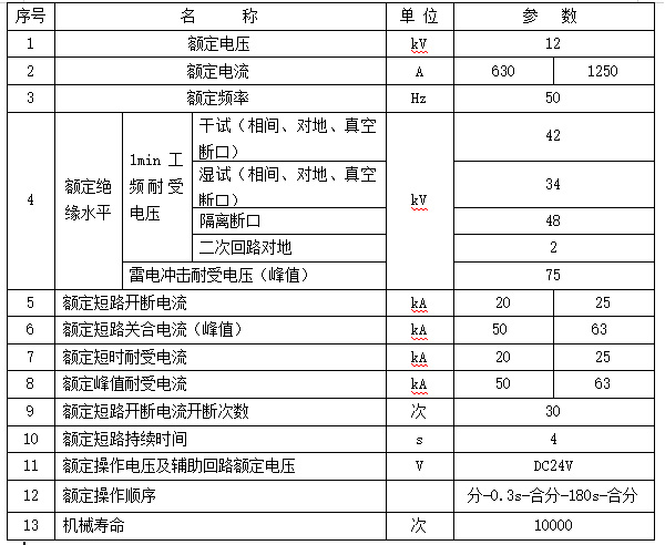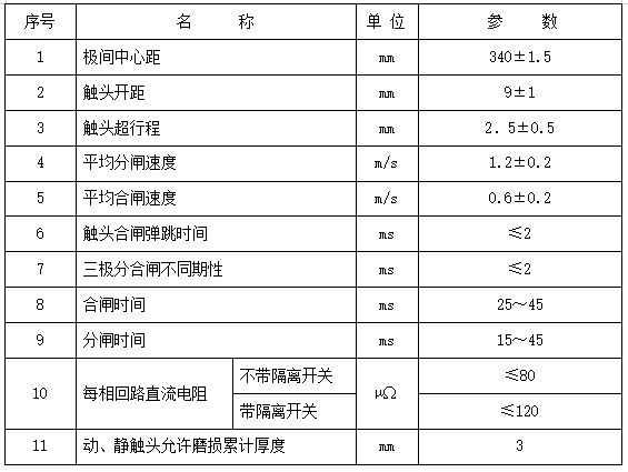 4.1 斷路器主要技術參數,見表1。